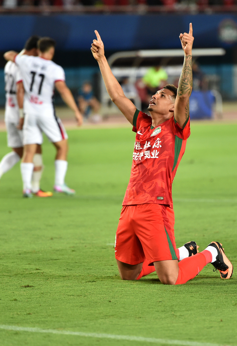 6月14日,河南俱乐部酒祖杜康队球员费利佩·卡多索在比赛中庆祝进球。\n 当日,在河南郑州举行的2025赛季中国足球超级联赛第14轮比赛中,河南俱乐部酒祖杜康队主场3比2战胜成都蓉城队。\n 新华社 发