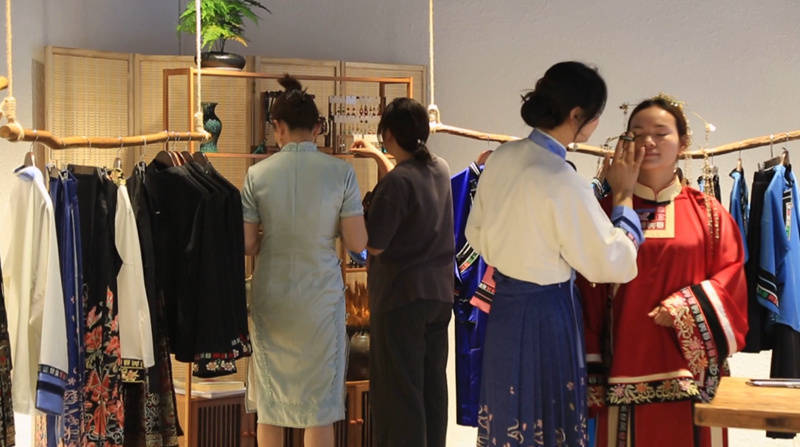 融合着屯堡刺绣元素的国风裙装,成为年轻人拍照打卡的热门选择;带有屯堡传统纹样的婚嫁服饰,在当地婚礼中频频亮相……大明屯风工作室的产品以“小切口”打开了市场大门。