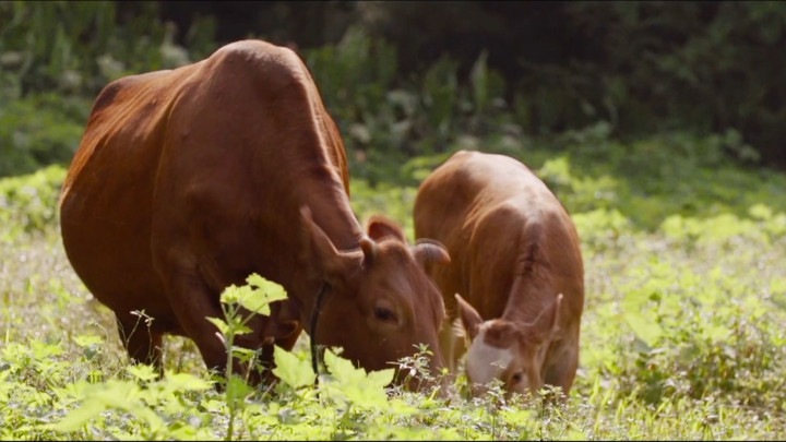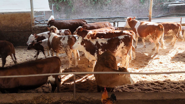 “蜀宣花牛是以宣汉黄牛为母本,选用原产于瑞士的西门塔尔牛和荷兰的荷斯坦乳用公牛为父本选育而成的乳肉兼用型牛新品种,能产出乳脂率超4%的香浓牛奶与雪花纹牛肉,又有耐湿热体质。”达州市宣汉县大成镇农业综合服务中心工作人员周成毅向记者介绍说,作为中国南方第一个乳肉兼用型牛新品种,蜀宣花牛如今已成为达州市宣汉县的“金字招牌”。